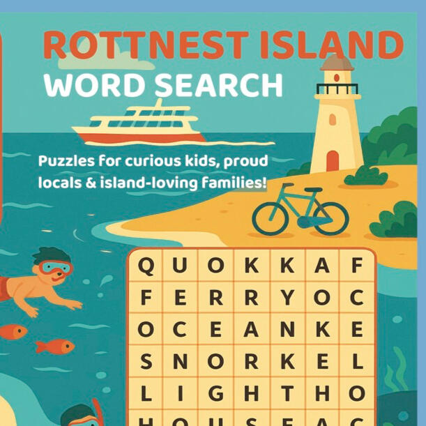 Escape to one of Australia’s most beloved islands with this Rottnest Island Word Search Puzzle Book! Inspired by the breathtaking beauty and unique charm of Rottnest — a coastal paradise just off Western Australia — this puzzle book brings the island to life through 50 themed word searches for curious kids, proud locals, and island-loving families.